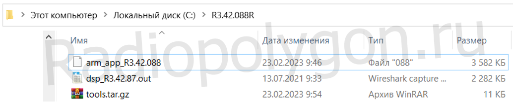 Папка прошивки содержит 3 файла: arm_app, dsp, tools . Хранить папку вы можете где угодно. Но вот для заливки постарайтесь разместить ее по короткому пути (поместите на время на диск С:, например). И избегайте переименования с включением кириллицы и иероглифов (в последнем, уверен, я могу на вас положиться). Зачем это? Как правило это частые причины ошибки невозможности загрузки по критерию "time out"