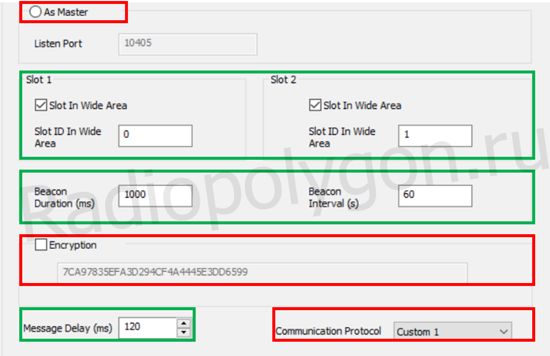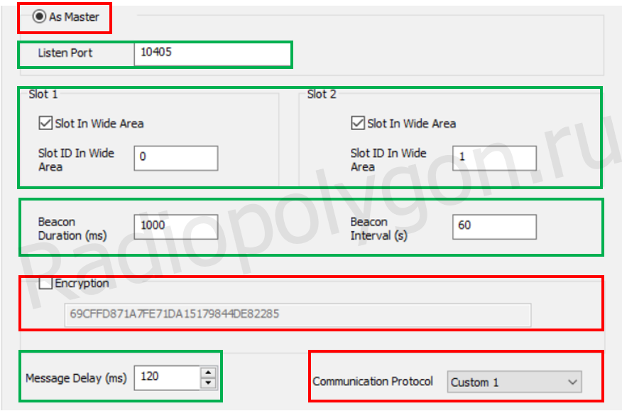 Здесь аналогично настройкам мастер-репитера, за исключением: