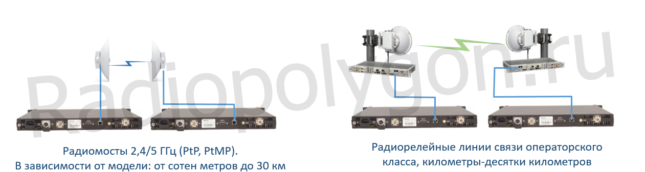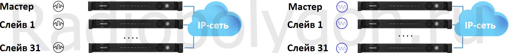 В качестве опорной сети полёт фантазии неограничен. Главное - выдержанные требования к IP-сети и доступность ретрансляторов в ней. Вот лишь некоторые примеры с примерными дальностями размещения ретрансляторов: